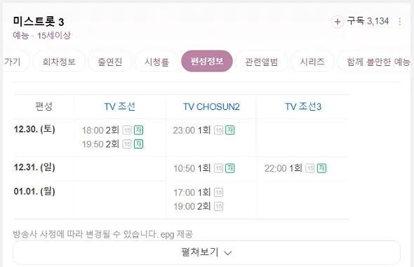 1) 미스트롯3 재방송 편성표 보기